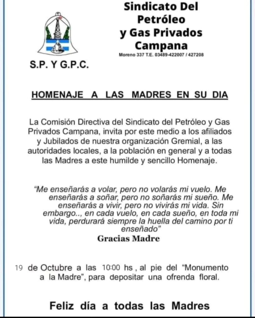 HOMENAJE A LAS MADRES EN SU DIA 25 de octubre de 2025 por c2061381 Domingo 19 de octubre a las 10hs, realizaremos el habitual homenaje a las madres en su dia donde depositaremos una ofrenda floral al pie del monumento que las evoca, ubicado en Blvd. Sarmiento, frente a Catedral Santa Florentina.