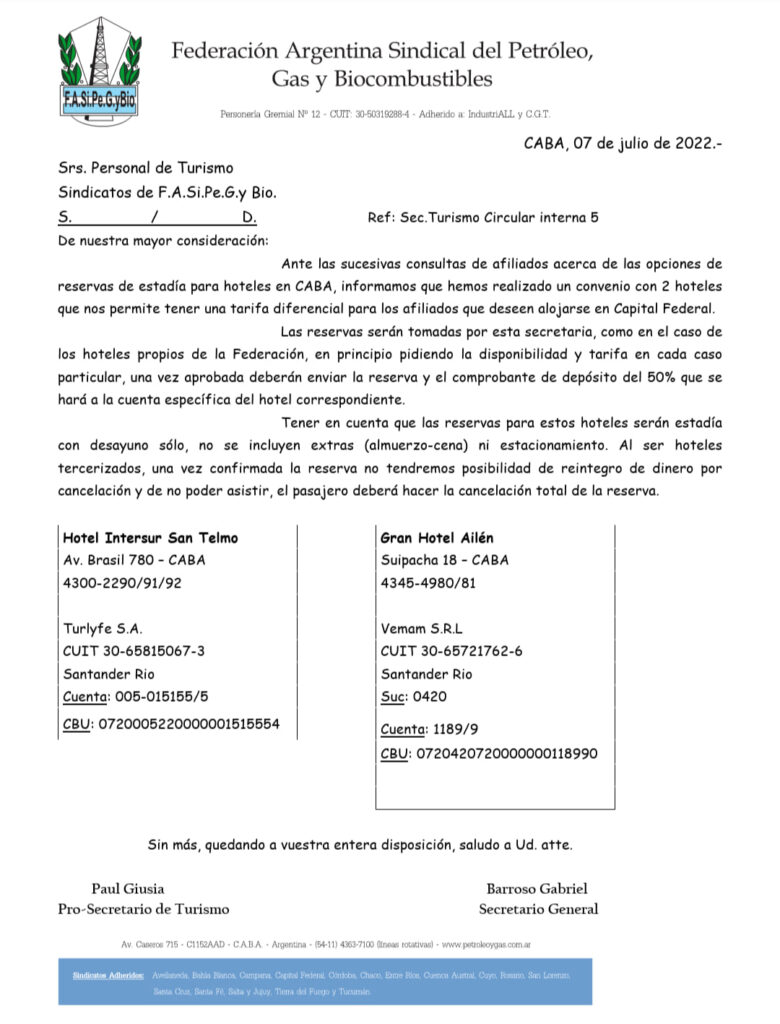 SINDICATO DEL PETROLEO Y GAS PRIVADO DE CAMPANA